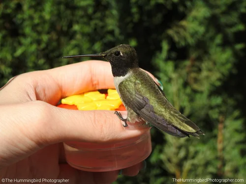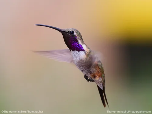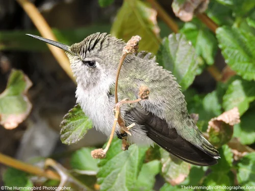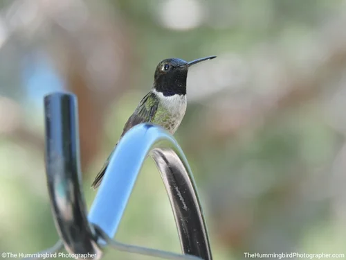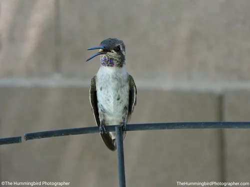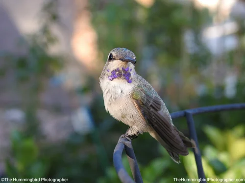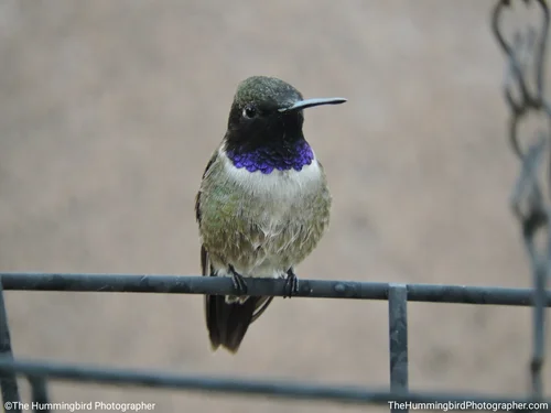 Male Black-Chinned hummingbirds have black heads with iridescent purple feathers on their neck that are only visible in perfect lighting. Females are white and usually have no color on their throats. All pictures were taken in Las Vegas, Nevada.