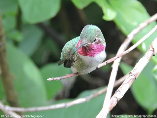 Male Broad-Tailed hummingbirds have an iridescent pink throat while females have orange/green spots. All pictures were taken in Panguitch Lake, Utah.