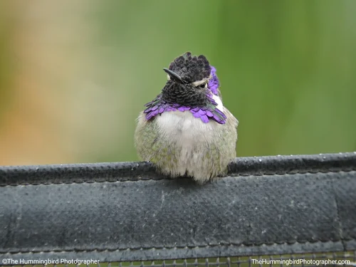 I found this fledgling male Costa's hummingbird living in my yard. Watch him grow by looking at the pictures from bottom to top. Most recent pictures are at the top.