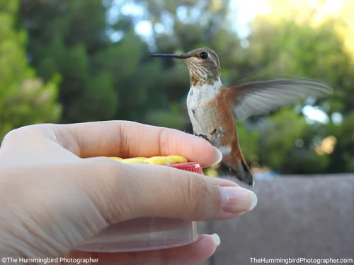 Male Rufous hummingbirds have a beautiful reddish/gold gorget (similar to Allen's) while females usually have orange feathers in the middle of their throat. All pictures were taken in Las Vegas, Nevada, and Sedona, Arizona.